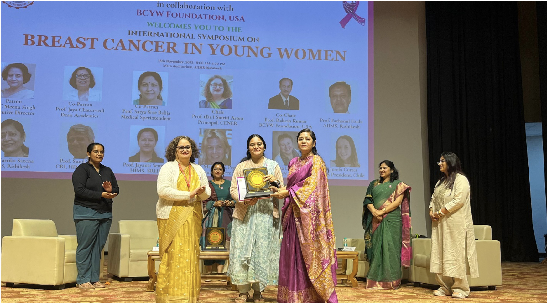 The AIIMS, Rishikesh team received an award for their sterling work in breast cancer prevention and screening during a panel on Breast Cancer in Young Women, organized by the Centre of Excellence in Nursing Education and Research (CENER), AIIMS Rishikesh.